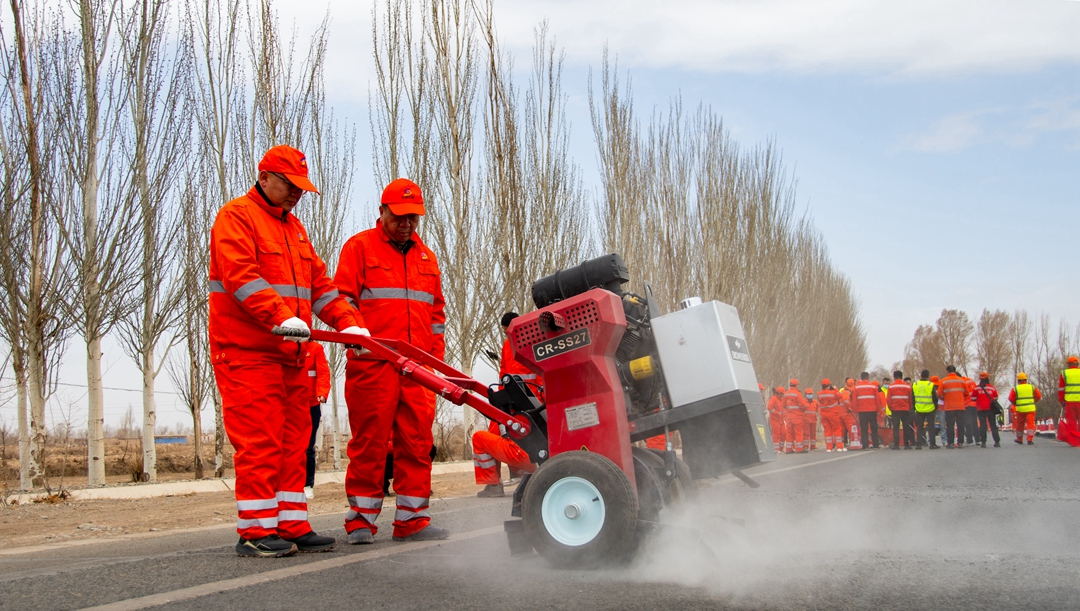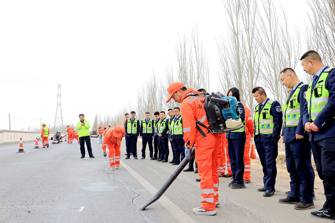 春阴褪去、天色渐朗,百日大干迎国评劳动竞赛如火如荼之际,4月11日上午,张掖公路事业发展中心在S301线大满养护站附近摆下“擂台”,各养护单位的60余名技术骨干、养护精英摩拳擦掌,这场融合了实操竞技、经验交流与技术探讨的路面裂缝处治观摩活动,也吸引了县区交通局、高速公路收费部门的20余名工作人员前来围观。